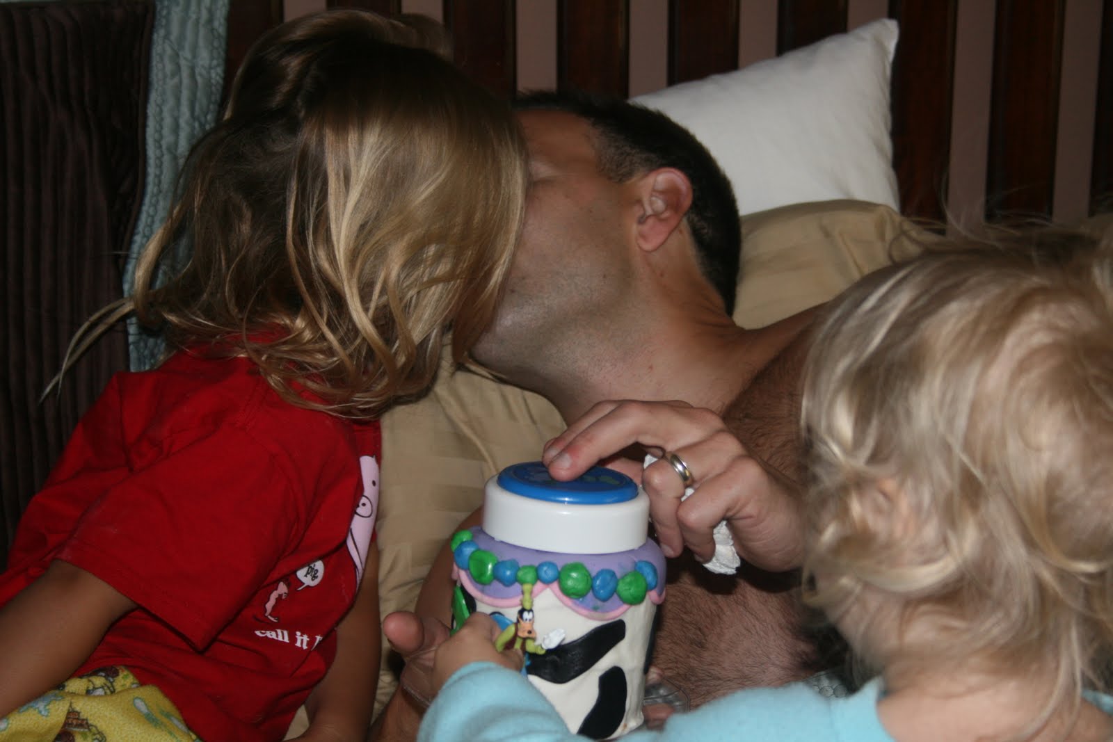 With such a busy week behind me and a trip to Disney coming up he made me promise not to make him a cake. (I was relieved because I'm about all caked out!!!) But this morning sweet Bailey girl woke up and wished her daddy a happy birthday...then turned to me and whispered "I want to put the Goofy toy on daddy's cake".